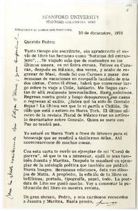 California [a] Pedro Lastra Carta, 20 de diciembre 1979, [manuscrito] / Fernando Alegría. 1 hoja ; 21,5 x 14 cm. .