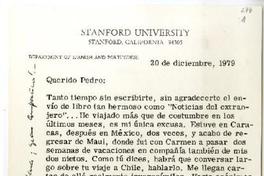 California [a] Pedro Lastra Carta, 20 de diciembre 1979, [manuscrito] Fernando Alegría.