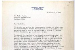 Berkeley, California [a] Pedro Lastra Carta, 25 de enero 1970, [manuscrito] Fernando Alegría.