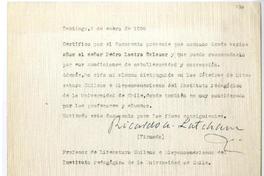 Carta de recomendación sobre las condiciones personales y académicas de Pedro Lastra.