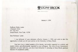 Comunica nombramiento de Pedro Lastra, como Académico Emérito de la Universidad Estatal de New York al Stony Brook.