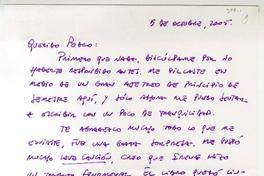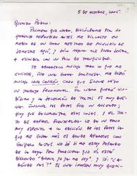 Carolina del Norte, Estados Unidos [a] Pedro Lastra Carta, 5 de octubre 2005, [manuscrito] Juan José Daneri.