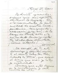 San Bernardo, Chile [a] Pedro Lastra Carta, 20 de junio 2001, [manuscrito] Juan Loveluck.