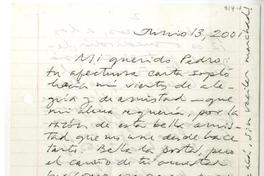 San Bernardo, Chile [a] Pedro Lastra Carta, 13 de junio 2001, [manuscrito] Juan Loveluck.