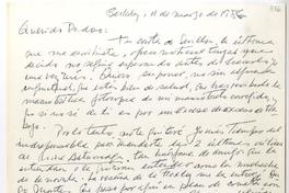 Berkeley, California [a] Pedro Lastra Carta, 11 de marzo 1986, [manuscrito] Vicente Urbistondo.