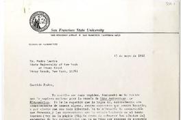 Barcelona, España [a] Pedro Lastra Carta, 15 de mayo 1985, [manuscrito] Vicente Urbistondo.