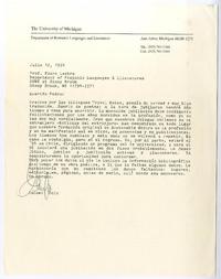 Michigan, Estados Unidos [a] Pedro Lastra Carta, 12 de julio 1994, [manuscrito] / Cedomil Goic. 1 hoja ; 21 x 18 cm. .