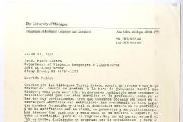 Michigan, Estados Unidos [a] Pedro Lastra Carta, 12 de julio 1994, [manuscrito] Cedomil Goic.