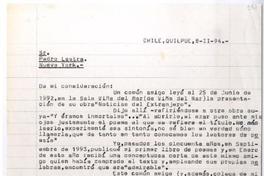 Quilpué, Chile [a] Pedro Lastra Carta, 8 de noviembre 1994, [manuscrito] Rubén Jacob Carrasco.