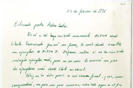 Seattle, Washington D. C. [a] Pedro Lastra Carta, 22 de febrero 1996, [manuscrito] / Sergio Mansilla Torres. 1 hoja ; 28 x 21 cm. .