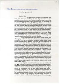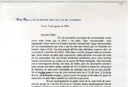 París, Francia [a] Pedro Lastra Carta, 12 de agosto 2002, [manuscrito] Waldo Rojas.