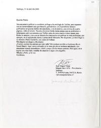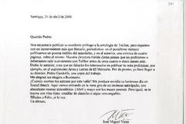 Santiago, Chile [a] Pedro Lastra Carta, 24 de abril 2000, [manuscrito] José Miguel Varas.