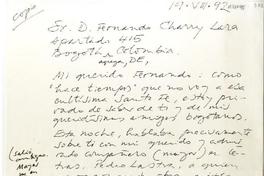 Columbia, Estados Unidos [a] Fernando Charry Lara Carta, 19 de agosto 1992, [manuscrito] Juan Loveluck.
