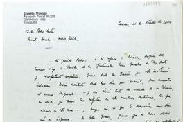 Caracas, Venezuela [a] Pedro Lastra, New York Carta, 26 de octubre 2000, [manuscrito] Eugenio Montejo.