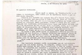 Paris, Francia [a] Graciela Carta, 6 de octubre 1976, [manuscrito] / Julio Cortázar. 1 hoja ; 28 x 22 cm. .