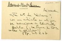 Comunica el envío de un artículo de Edwards Bello, publicado en "Dilemas".
