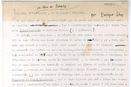 Palabras sobre un libro de Roberto Merino [manuscrito] Enrique Lihn.
