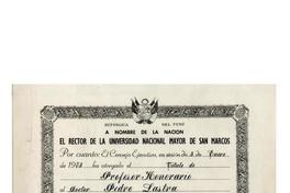 Otorga el título de "Profesor Honorario" al Doctor Pedro Lastra, concedido por el Consejo Ejecutivo de dicha universidad, en sesión del 3 de enero de 1973.