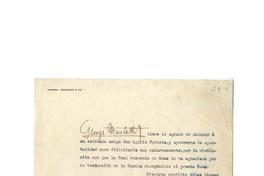 1 carta : Archivo del Escritor Biblioteca Nacional, Avenida Libertador Bernardo O'Higgins, Santiago, Chile.