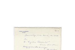 Santiago, Chile [a] Egidio Poblete, Valparaíso, Chile Carta, 1938 abril 3, [manuscrito] Roberto Peragallo Silva.
