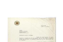 Santiago, Chile [a] Egidio Poblete Carta, 1938 abril 3, [manuscrito] Arturo Alessandri Palma.