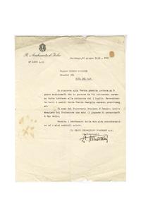 Con membrete "Ambasciata di S.M. il Re d'Italia".
