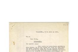 Valparaíso, Chile [a] Hugo Grove Carta, 1939 abril 14, [manuscrito] Egidio E. Poblete.