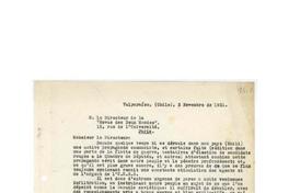 Valparaíso, Chile [a] Director de Revue des Deux Mondes Carta, 1931 noviembre 3, [manuscrito] Egidio Poblete.