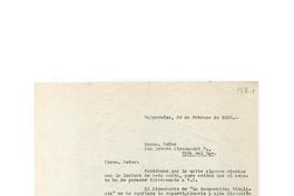 Valparaíso, Chile [a] Arturo Alessandri Carta, 1935 febrero 26,, [manuscrito] Egidio Poblete.