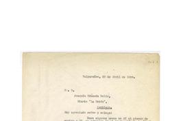 Valparaíso, Chile [a] Joaquín Edwards Bello Carta, 1939 abril 20, [manuscrito] Egidio Poblete.
