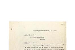 Valparaíso, Chile [a] Arturo Alessandri Carta, 1936 octubre 29, [manuscrito] Egidio Poblete.