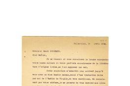 Valparaíso, Chile [a] Henri Bordeaux Carta, 1938 abril, [manuscrito] Egidio Poblete.