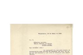 Valparaíso, Chile [a] Sócrates Aguirre Carta, 1938 abril 19, [manuscrito] Egidio Poblete.
