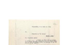 Valparaíso, Chile [al] Director del diario "El Pueblo" Carta, 1938 junio 6, [manuscrito] Egidio Poblete.