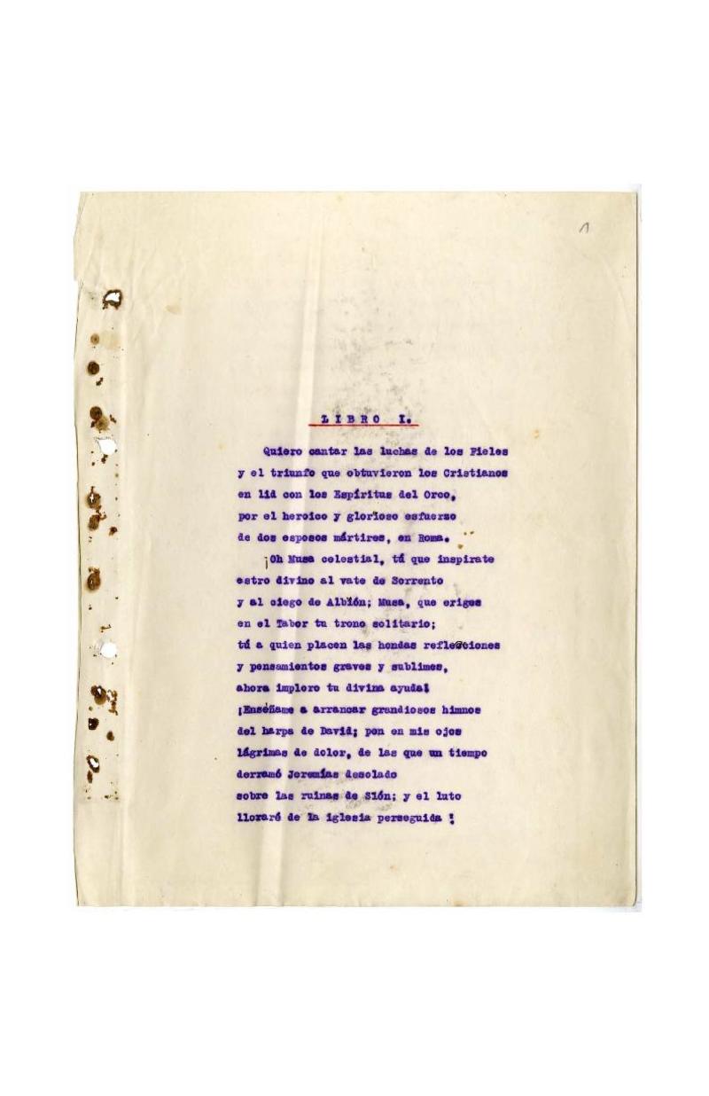 Los Mártires (Libro I al Libro IV) [manuscrito] / por F.A. de Chateaubriand; traducido por Egidio Poblete. 165 hojas ; 28 x 22 cm. .