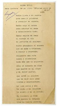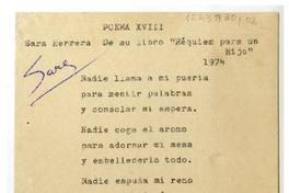 Poema XVIII [manuscrito] / Sara Herrera. 1 hoja ; 10,9 x 21,3 cm .