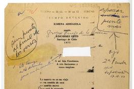 Corrección de prueba del poema "Tiempo detenido" de Ximena Adriazola, publicado por el Grupo Fuego de la poesia en Ediciones Orto del año 1977.
