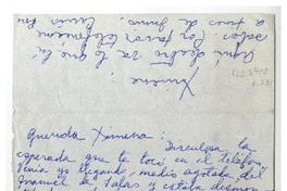 Lamenta no poder contestar una llamada telefónica, porque recién llegaba del Liceo Manuel de Salas, espera su llamada y le envía algo que ella sabe dentro de un sobre.