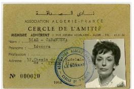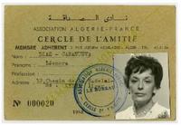 Carné de identificación de Leonora Kracht como miembro N°20 de la Association Algerie-France.