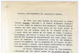 Humberto Díaz-Casanueva : del sentimiento trágico [manuscrito] / Evelyne Minard. 3 hojas ; 30 x 21cm. .