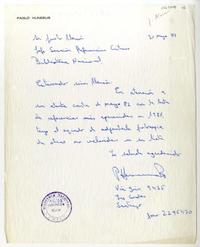 1 carta : Archivo del Escritor Biblioteca Nacional, Avenida Libertador Bernardo O'Higgins, Santiago, Chile.