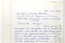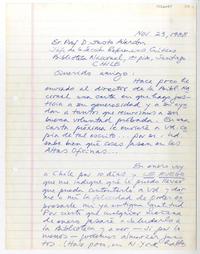 Columbia, South Carolina [a] Justo Alarcón Reyes Carta, 1988 noviembre 23, [manuscrito] Juan Loveluck.