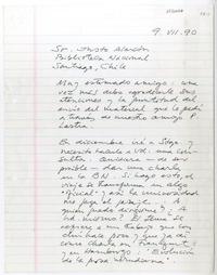 Columbia, South Carolina [a] Justo Alarcón Reyes Carta, 1990 julio 09, [manuscrito] Juan Loveluck.