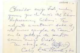 Comunica el envío de materiales y sobre el único ejemplar de revista "Cauce" que tiene gracias a la gentileza de Oreste Plath.