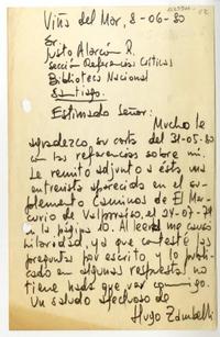 Viña del Mar, Valparaíso [a] Justo Alarcón Carta, 1980 junio 8, [manuscrito] Hugo, Zambelli.