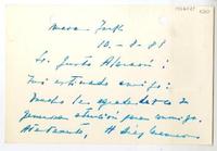 New York [a] Justo Alarcón Reyes Tarjeta, 1983 agosto 10, [manuscrito] / Humberto Díaz-Casanueva. 1 tarjeta ; 10,6 x 10,5 cm .