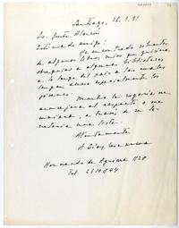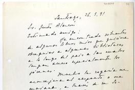 Santiago, Chile [a] Justo Alarcón Reyes Carta, 1991 marzo 26, [manuscrito] Humberto Díaz-Casanueva.