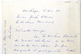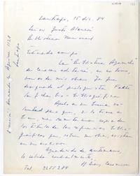 Santiago, Chile [a] Justo Alarcón Reyes Carta, 1984 diciembre 15, [manuscrito] Humberto Díaz-Casanueva.