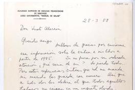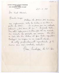 Santiago, Chile [a] Justo Alarcón Carta, 1988 marzo 28, [manuscrito] Rosa Cruchaga.