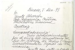 Linares, Chile [a] Justo Alarcón Reyes Carta, 1993 diciembre, [manuscrito] Emma Jauch.